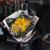 Contents include a white rose bouquet with ferns elegantly wrapped with premium paper and wrapping. Guaranteed to surprise your friend or loved one.