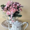 A stunning floral arrangement featuring soft pink roses and delicate blooms elegantly placed in a charming woven basket. Perfect for adding a touch of natural beauty to any space or as a special gift for Mothers day!