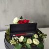 A black round box with beautiful flowers only highlight the star of the arrangement. An excellent everyday style for frequent travelers, this sleek, elegant wallet features two cash sleeves sized for international currencies, as well as plenty of space for cards and receipts.
