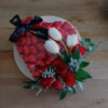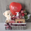Premium Belgian chocolates arranged in a real wood base with a fresh red roses and white orchid. Keeping it simple making it all the more striking.