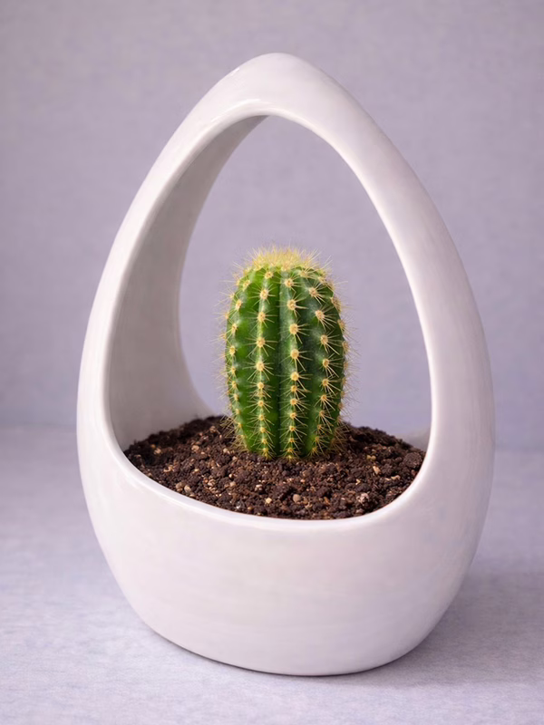 A modern white ceramic cactus planter featuring a sleek open-loop design that beautifully frames your plant. Perfect for succulents, mini cactus plants, and contemporary home décor, this minimalist planter adds elegance to desks, shelves, and coffee tables.