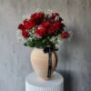 This charming arrangement features soft pink roses paired with delicate baby’s breath, creating a gentle, romantic look. Presented in a vintage terracotta vase and adorned with a burlap ribbon, it adds warmth and elegance, making it ideal for any occasion