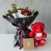 This unique basket is heavy with love and surprises. Gives the look and feel of a little teddy in a garden holding a glass bottle which includes your romantic message to your valentine.