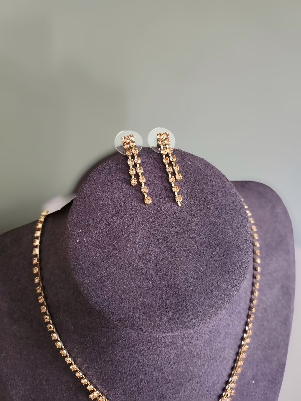 A sparkling Crystal necklace and matching earrings set designed to add elegance and brilliance to any outfit. Perfect for special occasions, gifting, and timeless style.