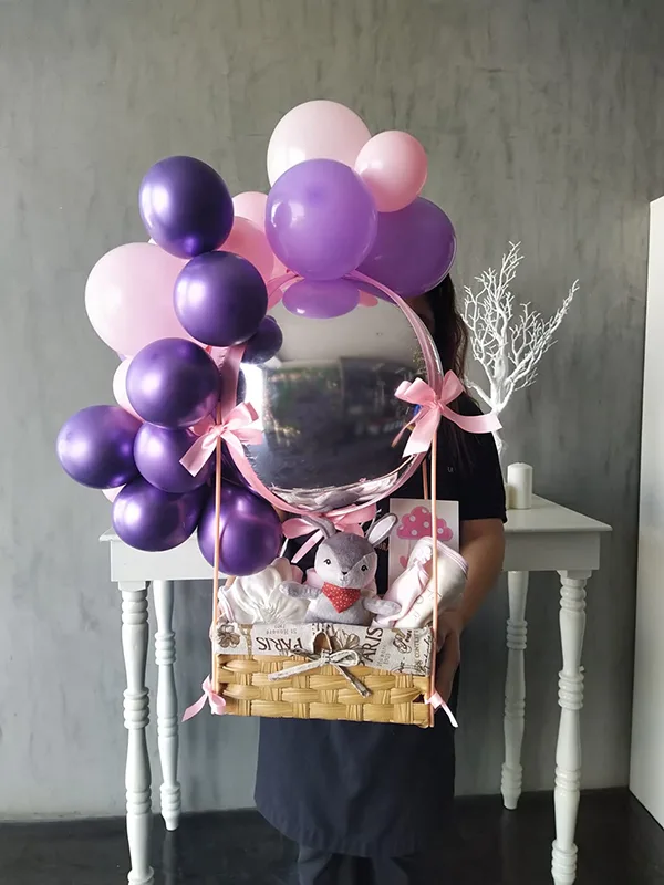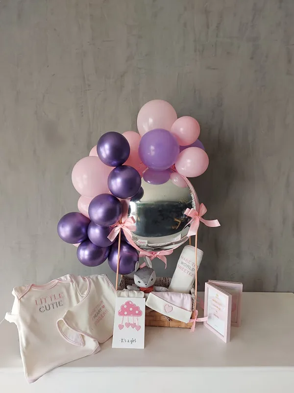 This stunning new baby girl hamper is filled with beautiful new baby delight’s. Carefully handpicked and stylishly presented in a brown wicker basket Adding to the extra wow factor, this new born hamper comes with a Balloon deco and cute soft toy to cuddle.