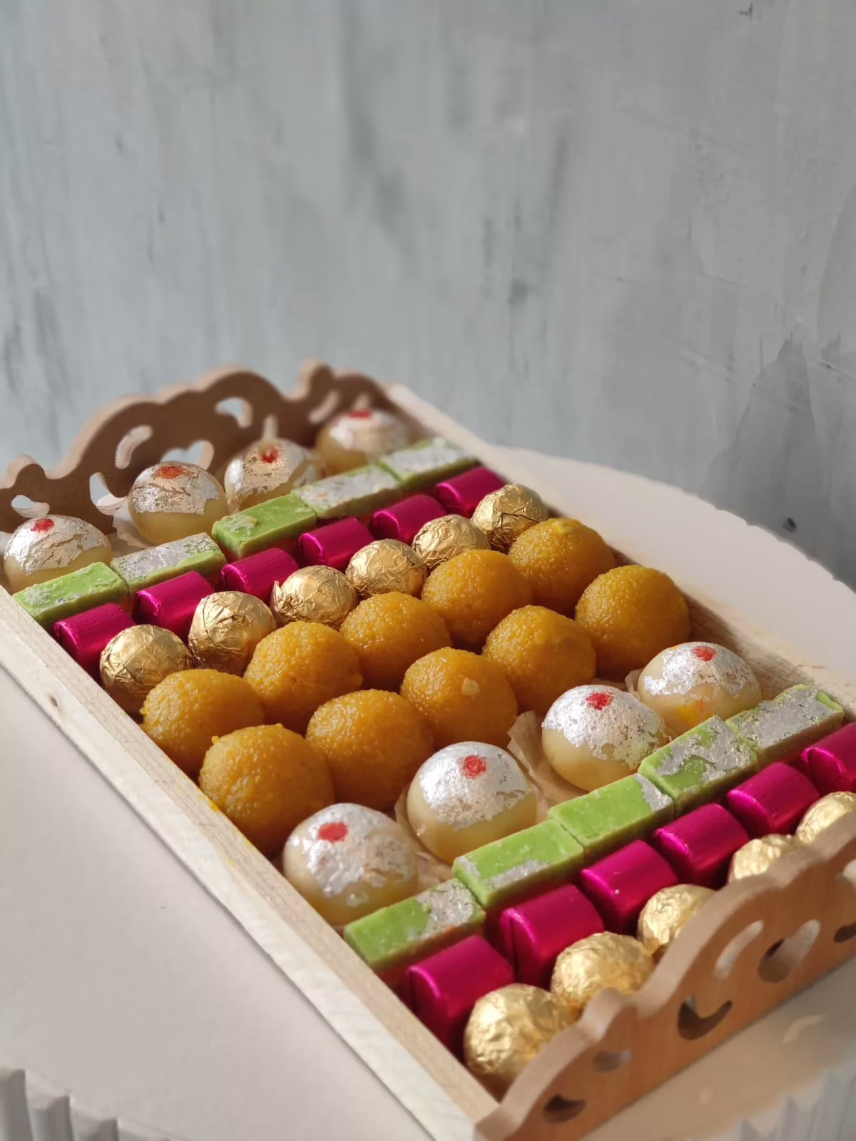 All in one Diwali tray with delicious Indian festive sweets and chocolates.