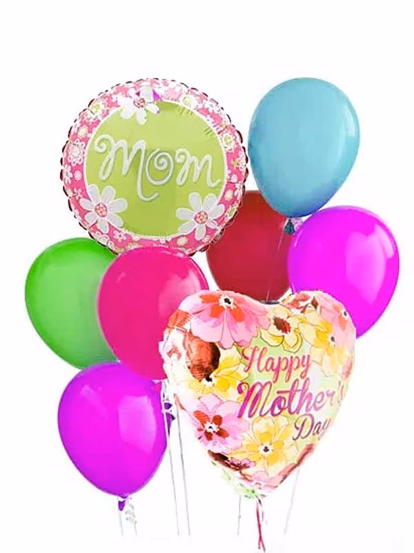 Celebrate Mother’s Day with a unique Mother’s Day balloon bouquet. Created by a local florist using 2 Mylar balloons and 5 latex balloons, this bright balloon gift will make your Mother smile on Mother’s Day.