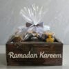 - Solid Wooden Base subtly decorated with elegant bougainvillea blooms, creating a rustic yet premium Ramadan presentation.