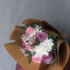 A graceful hand-tied bouquet of soft pink roses, elegantly wrapped in rustic kraft paper. Perfect for expressing love, gratitude, or admiration on any occasion.