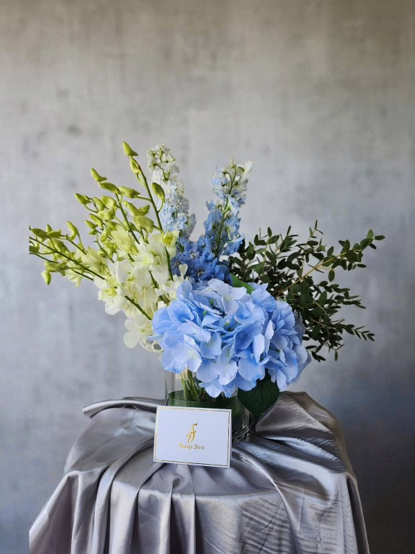 Celebrate life’s special moments with this elegant blue flower arrangement. Its soothing blue and white tones make it an ideal choice for welcoming a new baby boy, sending heartfelt congratulations, or gifting as a luxury flower arrangement. Stylish and timeless, it also makes a stunning centerpiece for any home or office.