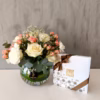 his beautiful arrangement of sweets and flowers is enchanting in every way. The fresh blooms decorate the intricate/y designed silver stand and the treats arranged inside are just divine. If you are looking for a gift to wow somebody and keep them mesmerized, this one is for you.