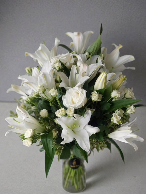 When simple touches of white speak louder than words. Suitable for any occasion. Be it a birthday, wedding or to just simply show someone you are thinking of them. This arrangement is for you.