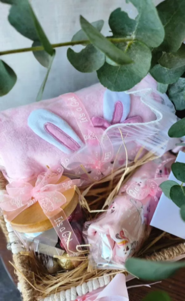Welcome the little princess with this charming baby hamper filled with love and warmth! Featuring soft baby rompers, a cozy blanket, delightful chocolates, and fresh flowers, this beautifully arranged basket is the perfect gift to celebrate a precious new arrival.