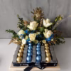 Premium Belgian chocolates (Croquant pistachio, Confetti milk chocolate) beautifully arranged in a solid wooden base with fresh cut red roses and lilies. Also comes with a I love you acrylic topper to make it extra special