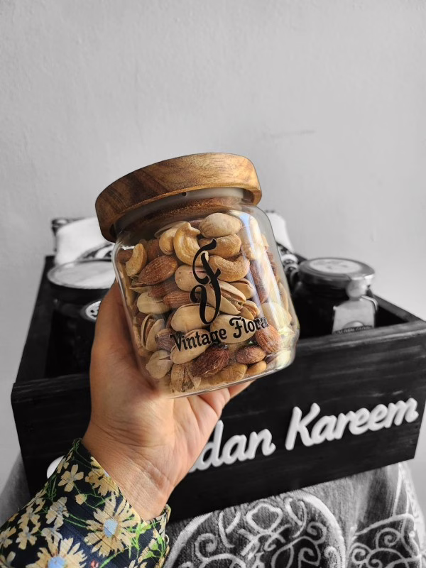 • Three premium jars of dates, mixed nuts, and assorted dry fruits