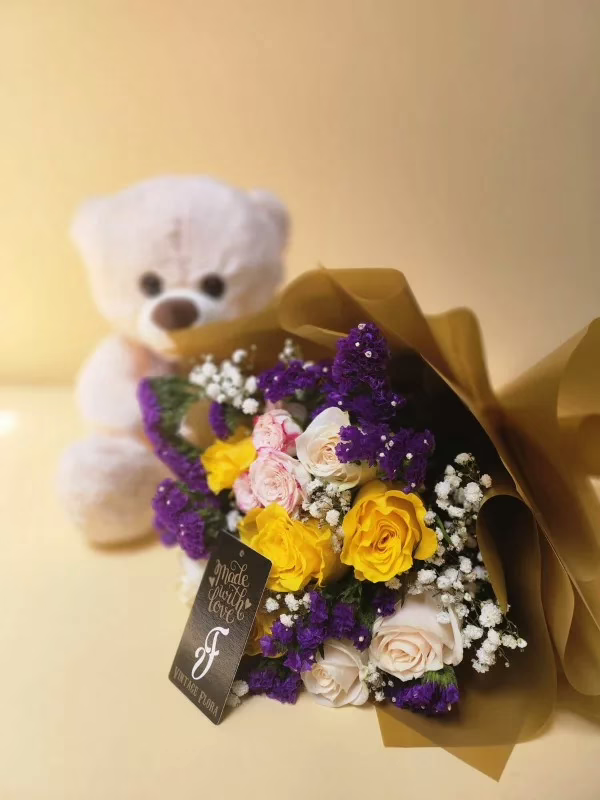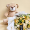 Brighten someone’s day with this beautiful Get Well Soon bouquet paired with a huggable cute little bear.