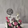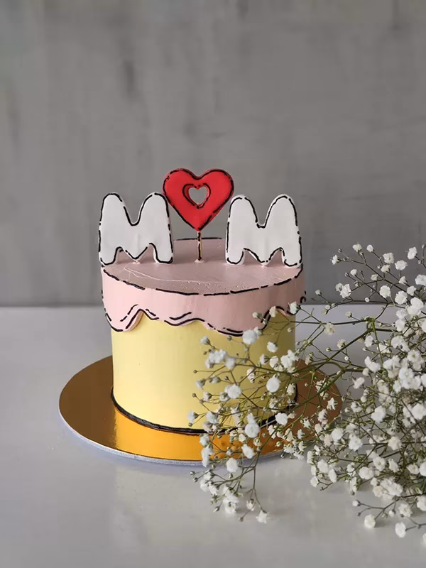 Mothers day special comic cake with flowers on an a acrylic case and a wooden base.