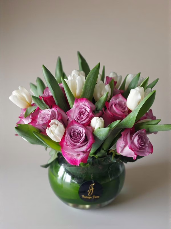 Simple white tulips with a touch of purple would do.