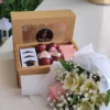 Craft box comes with silver and pink heart chocolates and a little pink bow. Also included is a mini bouquet with pink rose. Ideal little gift of you want to send some one hearts and flowers