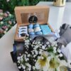 Craft box comes with silver and pink heart chocolates and a little pink bow. Also included is a mini bouquet with pink rose. Ideal little gift of you want to send some one hearts and flowers