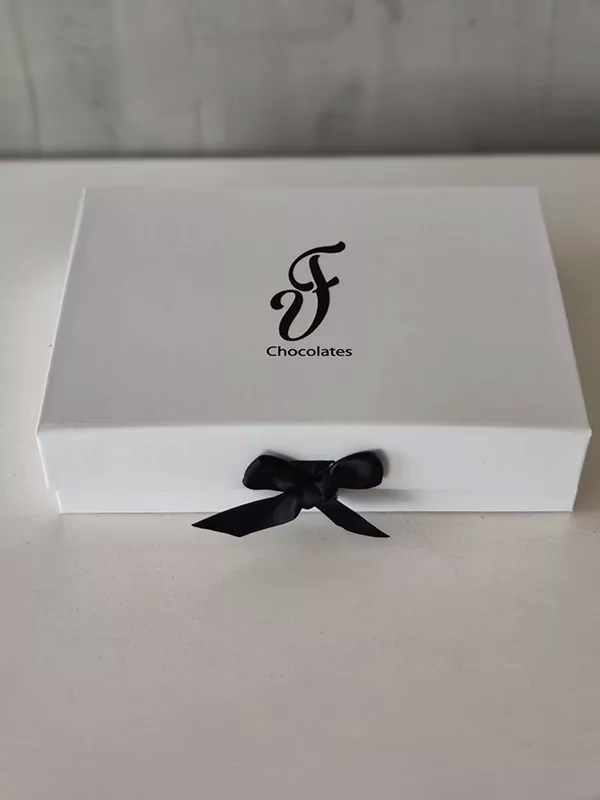 - Magnetic white gift box with black ribbon