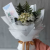 Beautiful hand-tied bouquet made with pastel shades of fresh roses and babies breath. Ideal to send out cheers and well wishes to anyone feeling down.