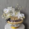This beautiful centerpiece features a stunning arrangement of pink and white orchids nestled in a sleek glass vase. The delicate blooms create a sophisticated and timeless look that is perfect for any occasion.
