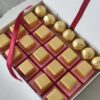 Indulge in a moment of pure bliss with a decadent box of assorted chocolates. This elegant box is tied with a festive red ribbon, making it the perfect gift for any occasion.
