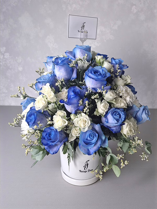 Who says flowers have to be ordinary? Turn heads and melt hearts with this striking blue and white masterpiece