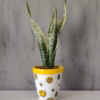 The items you would see under this category are only one of its kind as they are hand made individually by the artist. Therefore no two pots will look alike. The theme specific to this design is spring time. Done free hand, the lack of uniformity and uneven thickness of lines, only adds to its charm. This artistic pot is home to a Euphorbia plant . Ideal for house warming, birthday, anniversary or just because you want to brighten up her day.