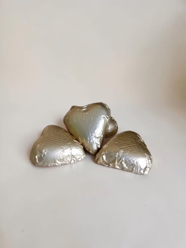 A soft, heart-shaped smooth milk chocolate crape, creating a warm and indulgent sweet treat perfect for dessert lovers.