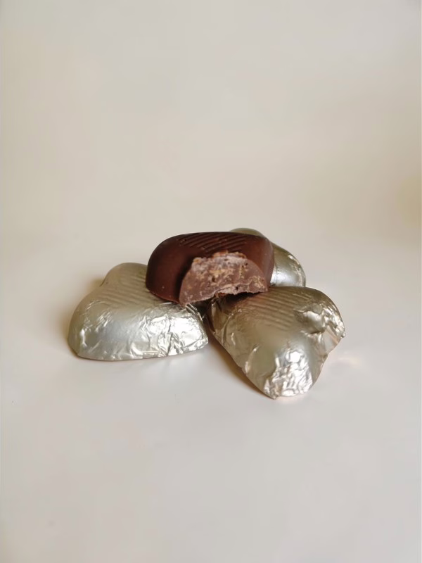 A soft, heart-shaped smooth milk chocolate crape, creating a warm and indulgent sweet treat perfect for dessert lovers