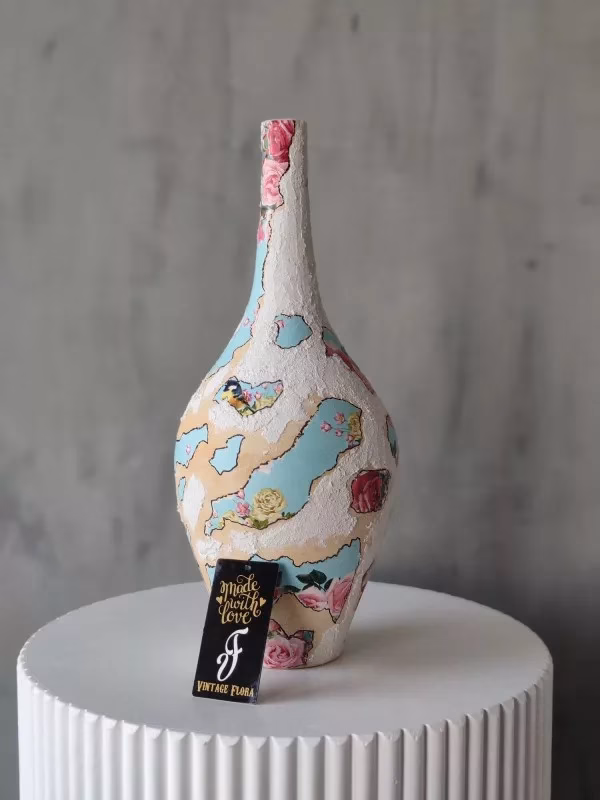 This vintage floral terracotta vase is a charming piece of home décor. Its unique design and vintage charm make it a special addition to any home.
