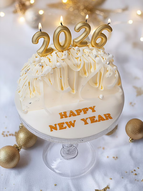 Celebrate new beginnings with a delightful cake paired with fresh blooms. Perfect for welcoming the New Year with sweetness and joy.