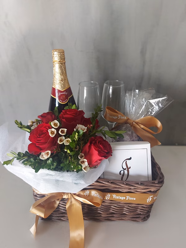This cute little hamper with a bunch of fresh red roses is an ideal display of love and romance.