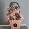 Wrapped in a beautiful pearl white organza, this chocolate tower adds a touch of sophistication and charm to any setting and occasion.