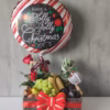 Balloons and roses. Now who would have thought of this combination. Well we thought why not. Topped with clear balloon to give an effect of the snow globe this beautiful and unique arrangement can even be kept indoor as a centerpiece or even outside your front door. just as a sign that would scream out “Christmas is celebrated here!”